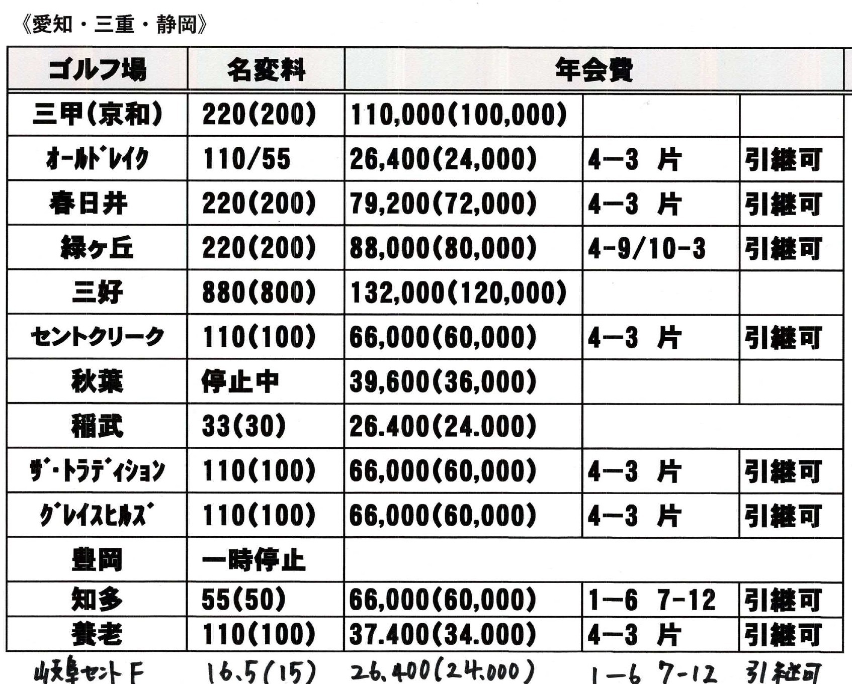 会員権相場表